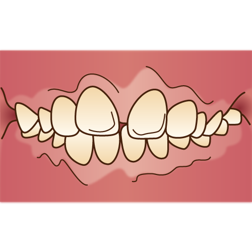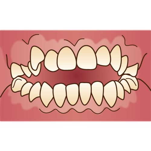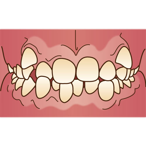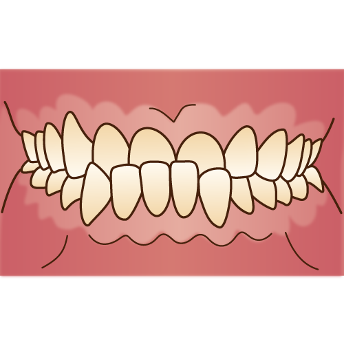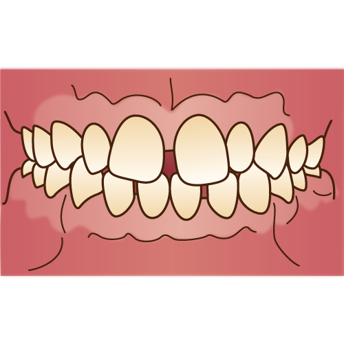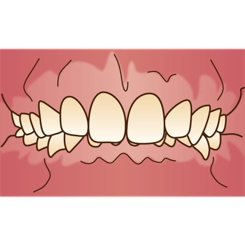 「乱杭歯(らんぐいば)」とも言い、八重歯もその一種です。歯並びがでこぼこだったり、歯が曲がって生えていたりします。